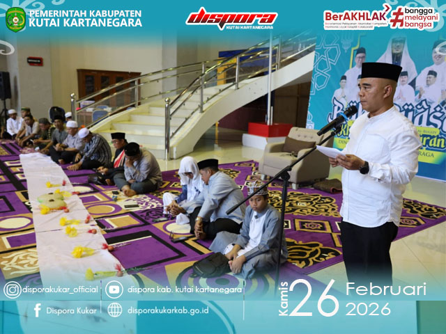 Dispora Kutai Kartanegara - Dinas Kepemudaan dan Olahraga Kabupaten Kutai Kartanegara (Dispora Kukar) menggelar kegiatan Khatam Al-Qur’an dan Buka Puasa Bersama di Kantor Dispora Kukar, Komplek Stadion Aji Imbut, pada Kamis (26/2/2026). Kegiatan ini menjadi bagian dari agenda rutin Ramadan yang diikuti oleh jajaran pegawai serta keluarga besar Dispora Kukar.