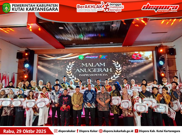 Tenggarong, 29 Oktober 2025 – Pemerintah Kabupaten Kutai Kartanegara (Kukar) melalui Dinas Pemuda dan Olahraga (Dispora) menggelar Malam Anugerah Inspirasi Pemuda 2025 sebagai bentuk apresiasi bagi pemuda-pemudi berprestasi di Kabupaten Kutai Kartanegara. Acara yang berlangsung di Pendopo Odah Etam, Tenggarong, pada Rabu malam (29/10/2025) ini menjadi ajang penghargaan bagi generasi muda yang telah memberikan kontribusi dan inspirasi dalam berbagai bidang.